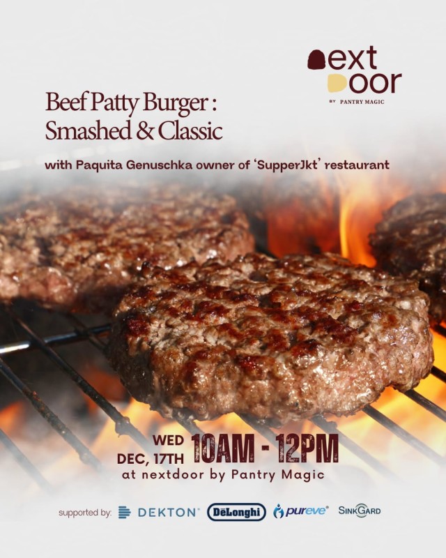 Learn how to make the perfect smashed burger, classic mushroom burger, and two signature sauces—taught by Paquita Genuschka of SupperJkt.