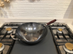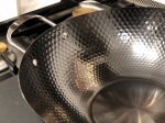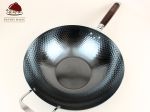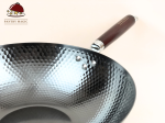 This wok has a flat bottom and suitable for use on electric stovetops and is made of hand-hammered iron.