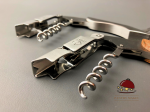 A corkscrew opener typically consists of a handle and a screw (also known as a worm) attached to it. The screw is designed to be inserted into the cork of a wine bottle.