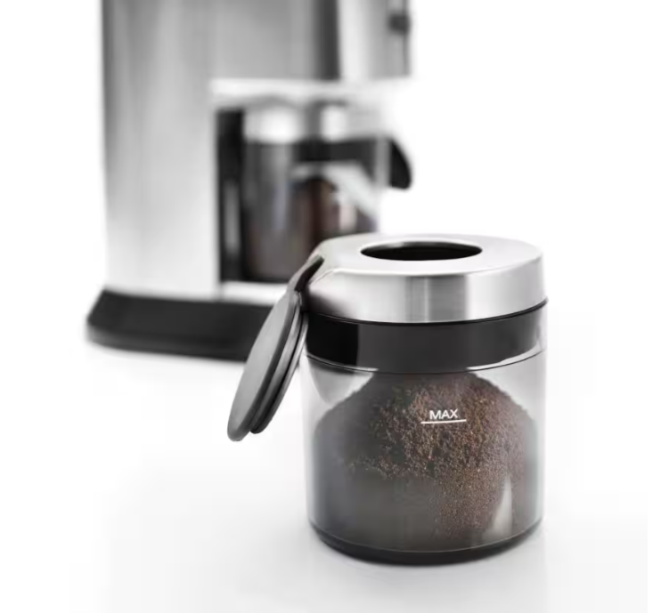 Ground coffee container: you can grind directly into a portafilter (for espresso) or into the included ground coffee container.