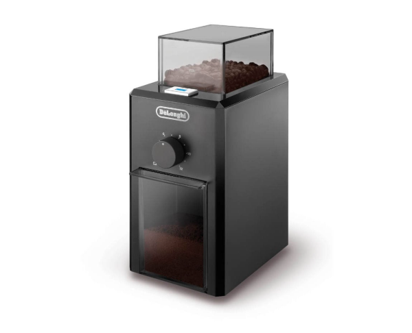 Integrated conical burr grinder with 8 grind levels for various coffee beans