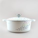– Do not use silk / stainless steel cookware. Always use wooden or silicone cookware to protect the enamel from scratching.