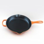 This cast iron skillet from Le Creuset has been coated with enamel both inside and out, making it easy to maintain.