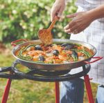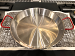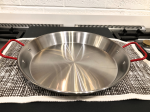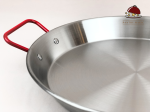 Paella pan with stainless material, suitable for making Spanish-style fried rice (Paella). The enamel-coated handle adds a classic feel to its appearance. This lightweight frying pan is perfect for family events or everyday use.