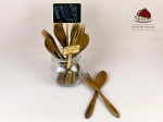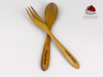 Made from quality teak wood, this spoon and fork has a smooth finish that makes it comfortable to hold and use. Very organic and smooth, made without coating, bleach or coloring.