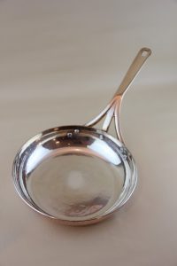 Soy Türkiye silver-lined frypan is a tad deeper and has a distinct hemispherical angling that makes tossing and flipping easy in an even and balanced manner. The handle’s mounting angle gives an ergonomic hold making it effortless to manipulate even in a busy kitchen environment.